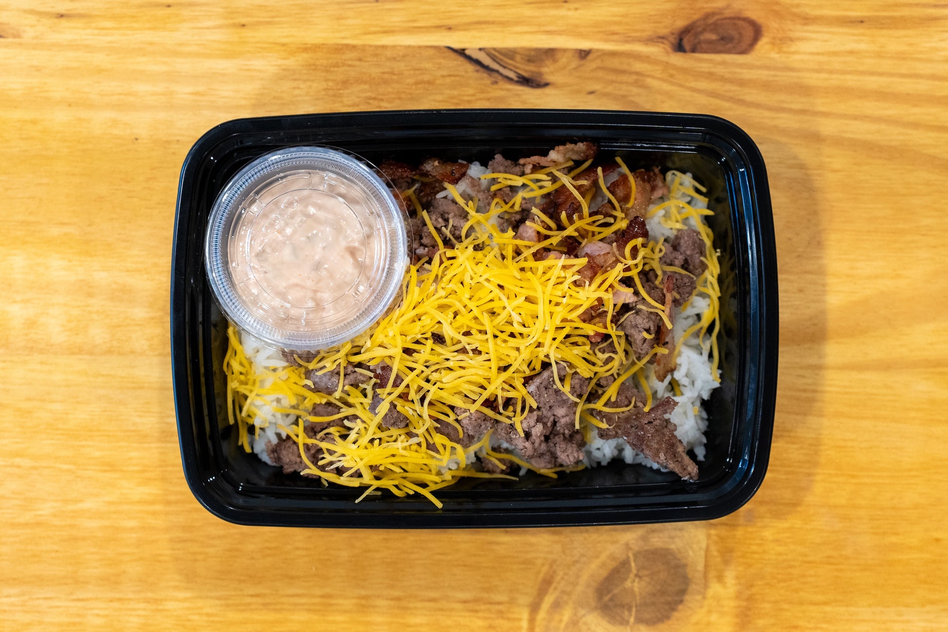 Hearty, bold, and built to satisfy — the Boss Hog delivers savory ground beef, crisp bacon, fluffy jasmine rice, and a generous sprinkle of cheddar, all drizzled with our signature Jerry Sauce. It’s smoky, creamy, and unapologetically delicious.